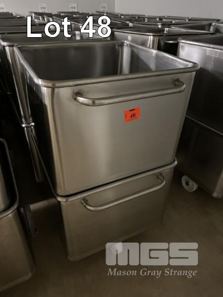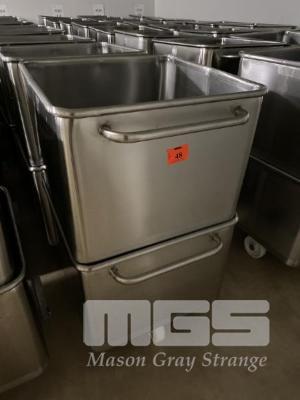 16 x STAINLESS STEEL MOBILE BINS, 200L, STACKABLE