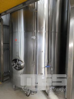 FRIGRITE STAINLESS STEEL UPRIGHT JACKETED TANK, 13,600L CAP, SIDEMOUNT & TOPMOUNT HATCHES