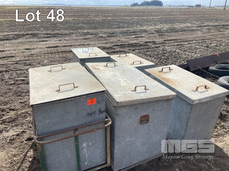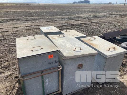 5 x GALV STORAGE BINS WITH 3 x TROLLEYS, 800 x 600 x 500mm APPROX