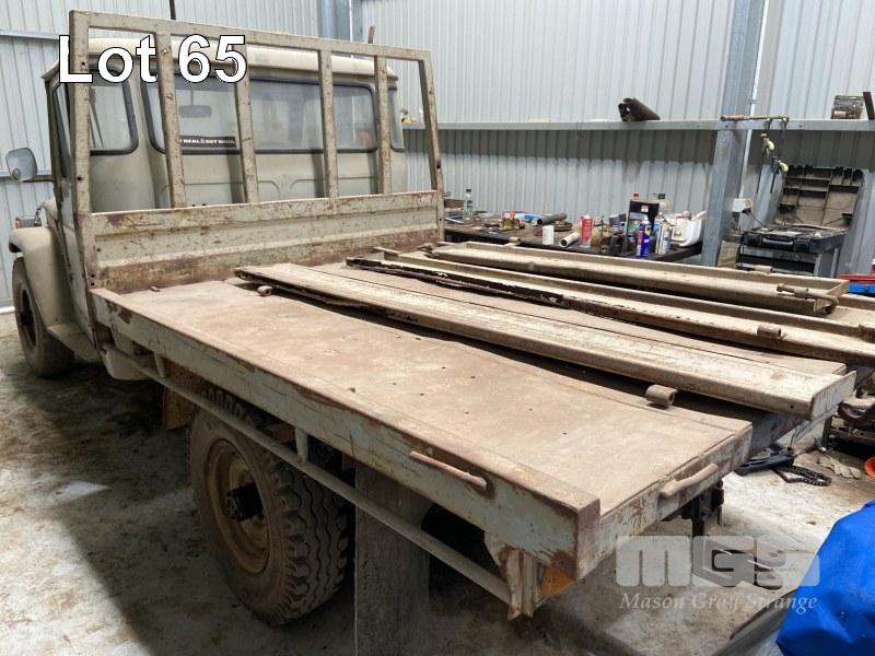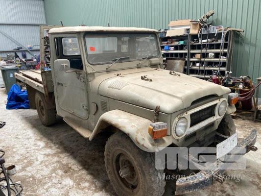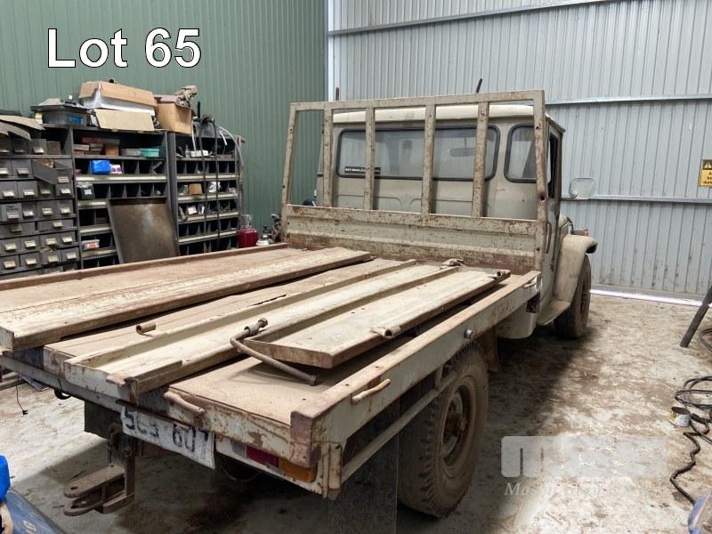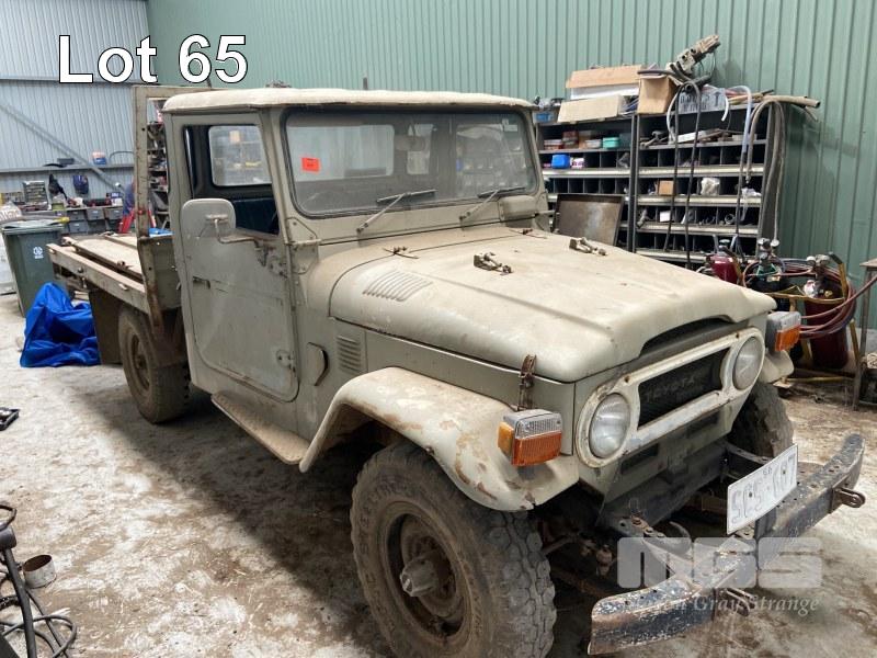 TOYOTA LAND CRUISER 10/ 1976. HJ45, 11J4S-008033 REG: SCS 607 ODO: 65,499kms 4x4 3.6 LITRE,6 CYLINDER DIESEL 4 SPEED MANUAL STEEL TRAY, 2200 x 1800mm DROP SIDES. LONG RANGE FUEL TANK HELPER SPRINGS TO REAR RUNS DRIVES OK, REGULARLY USED ON FARM