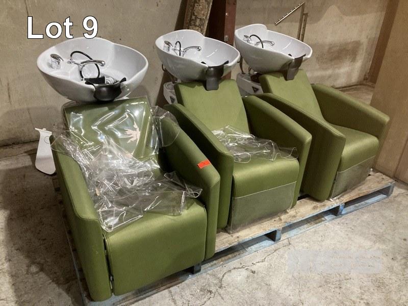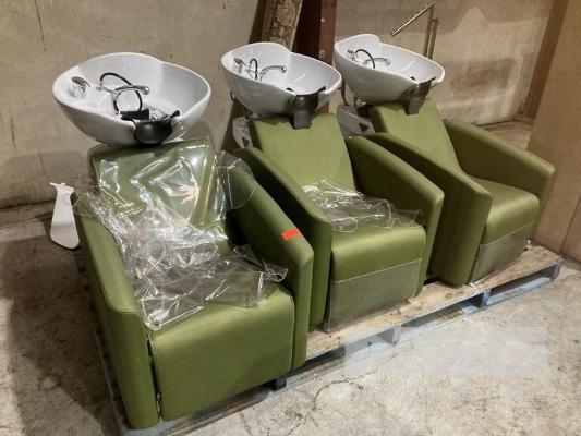 2 x HAIR WASH STATIONS, MALETTI, GREEN VINYL