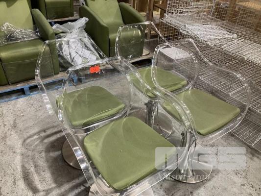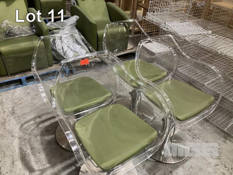4 x SALON CHAIRS, CLEAR ACRYLIC, HEIGHT ADJUSTABLE, CHROME FRAME