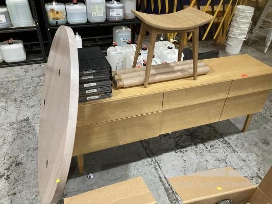 BUFFET, 180cm, 6 DRAWER, CIRCULAR TABLE, 120cm DIAMETER & STOOL