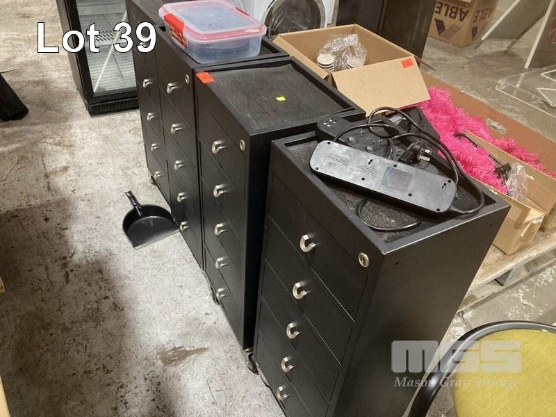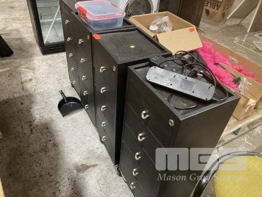4 x SALON TROLLEYS, 5 DRAWER, BLACK LAMINATE