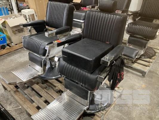3 x SALON CHAIRS, BLACK VINYL/CHROME, ADJUSTABLE HEIGHT