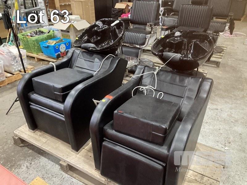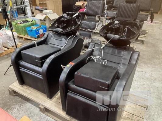 2 x HAIR WASH STATIONS, BLACK VINYL, TILTING BASIN WITH REMOTE