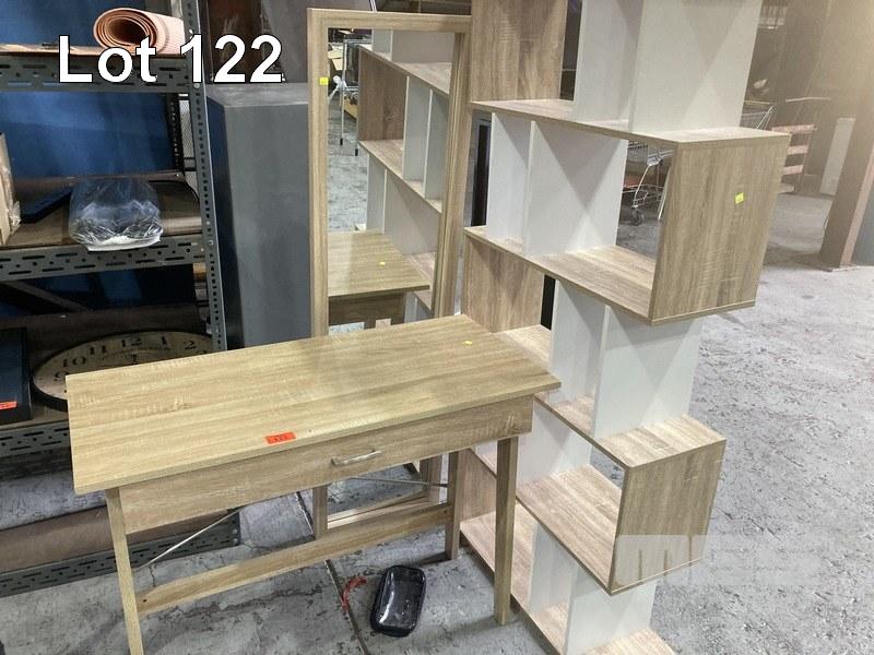 DESK, 110 x 50cm, SINGLE DRAWER WITH MATCHING CUBE SHELF UNIT & FRAMED MIRROR