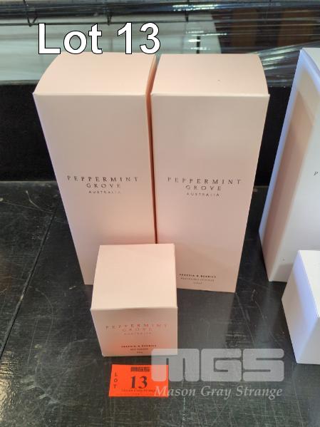 ASSORTED PEPPERMINT GROVE AUSTRALIA FRAGRANCE DIFFUSER & SOY CANDLES.