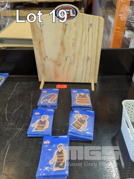 ASSORTED ADELAIDE CROWS AFL AIR FRESHENERS WITH DISPLAY STAND. 25 ITEMS APPROX.