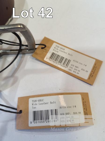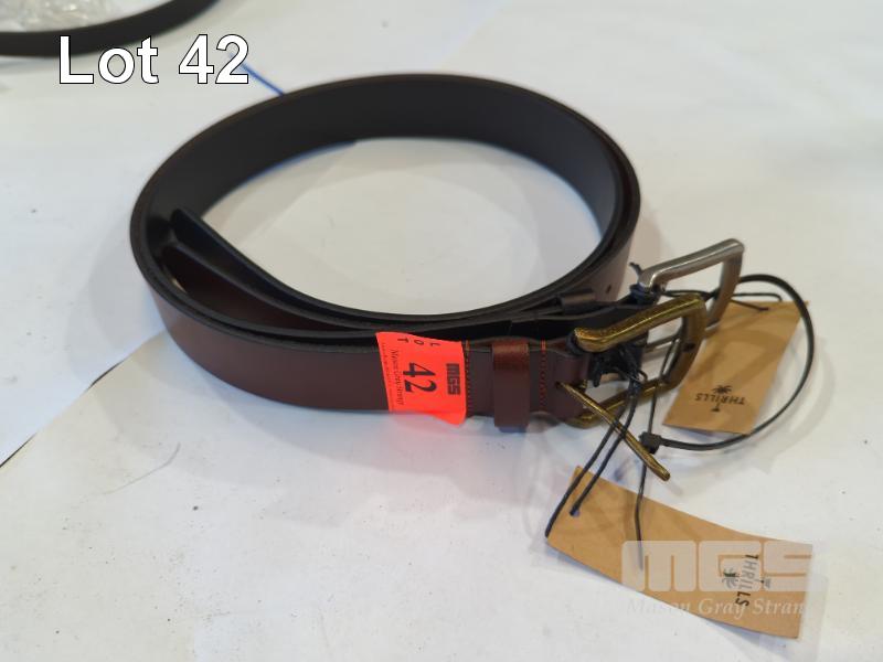 2 X THRILLS MEN'S WIDE LEATHER BELTS. SIZE SMALL-MEDIUM.