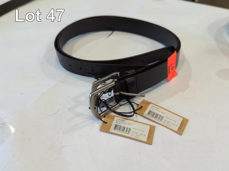 2 X THRILLS MEN'S WIDE LEATHER BELTS. SIZE SMALL-MEDIUM.