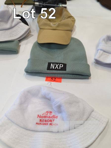 ASSORTED CAPS HATS & BEANIES 1 X NOMADIC RESORT PARADISE BEACH BUCKET HAT. 1 X NXP RUSH BEANIE. 1 X NOMADIC PARADISE BEACHCOMBER DAD CAP.
