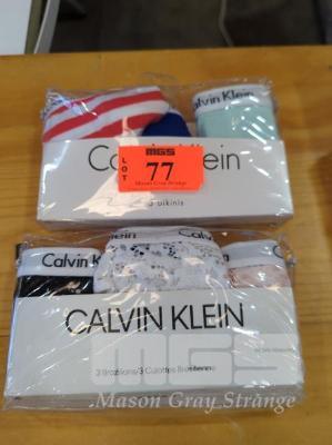 1 X CALVIN KLEIN 3-PACK UNDERWEAR COTTON STRETCH BIKINIS. SIZE SMALL. 1 X CALVIN KLEIN 3-PACK UNDERWEAR SILHOUETTES BRAZILIAN. SIZE XS.