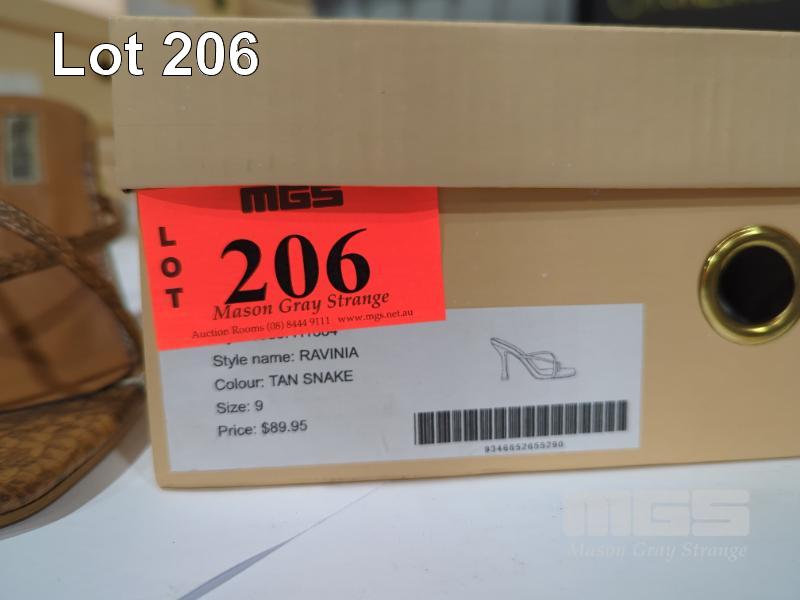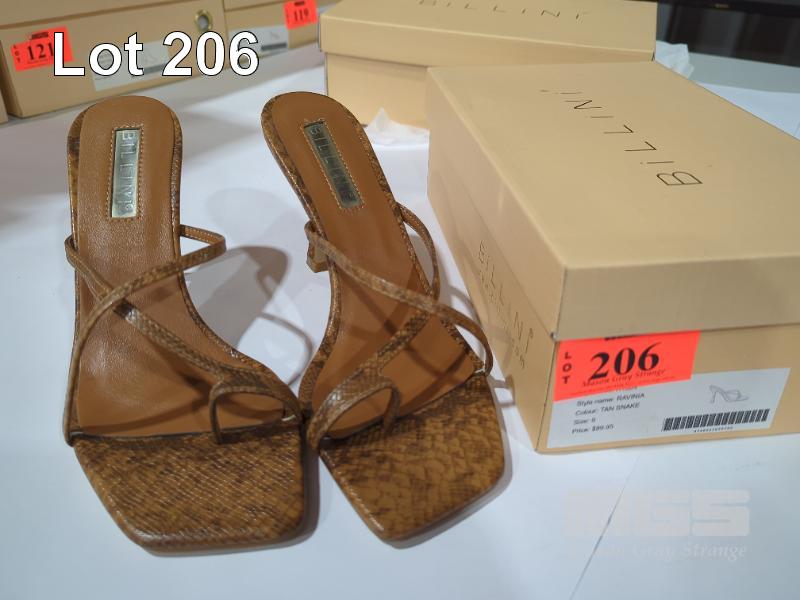 1 X PAIR BILLINI STILETTO HEELS SIZE 9. STYLE: RAVINIA COLOUR: TAN SNAKE