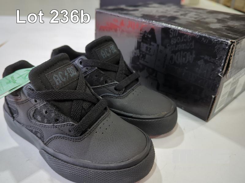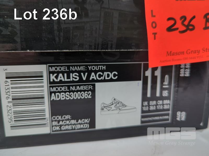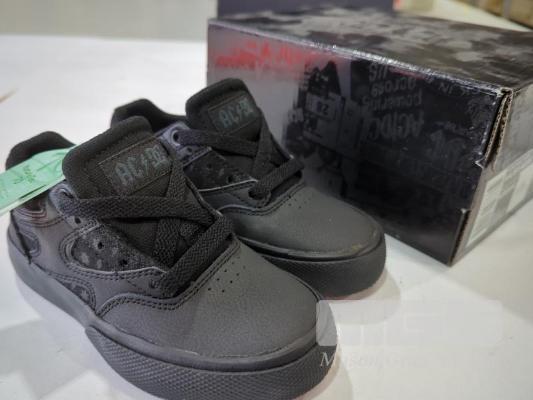 1 X PAIR DC SHOES YOUTH "KALIS V AC/DC" SHOES. SIZE 11. COLOUR: BLACK/BLACK/DK GREY.
