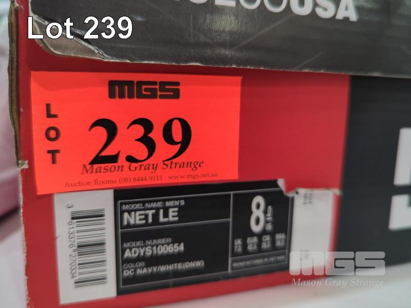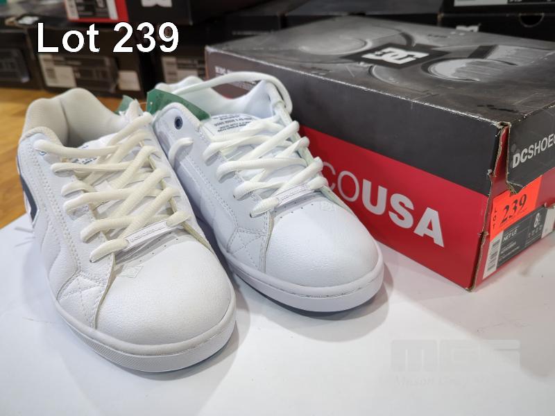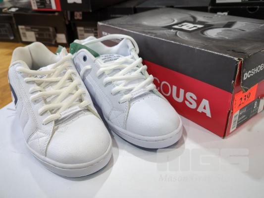 1 X PAIR DC SHOES "NET LE" SHOES. SIZE 8. COLOUR: NAVY/WHITE.