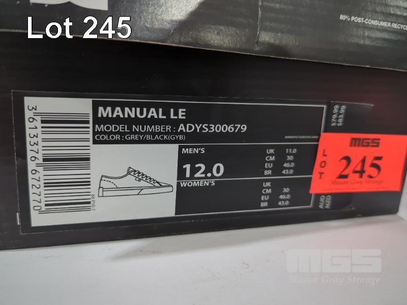 1 X PAIR DC SHOES "MANUAL LE" SHOES. SIZE 12. COLOUR: GREY/BLACK.