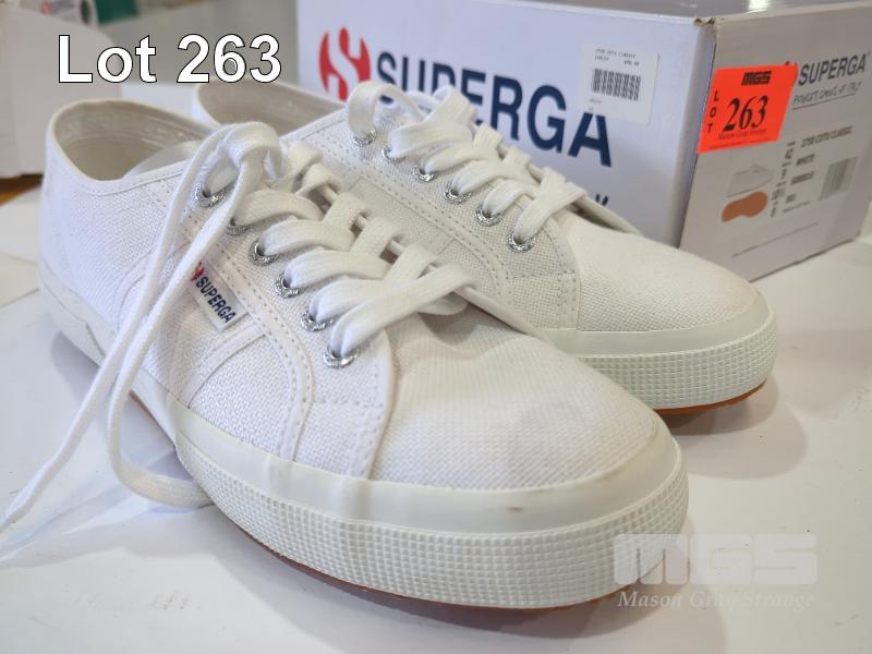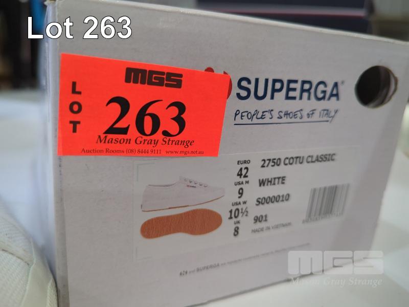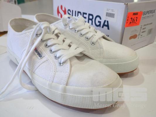 1 X PAIR SUPERGA SHOES. STYLE "2750 COTU CLASSIC" SIZE 9. COLOUR WHITE.