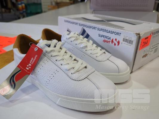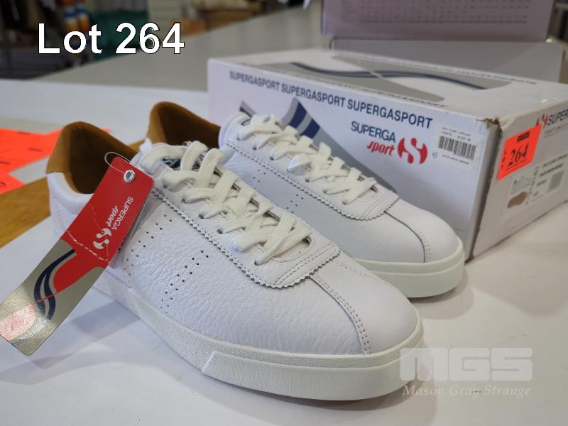 1 X PAIR SUPERGA SHOES. STYLE "2843 CLUBS COMFLEAU" SIZE 10. COLOUR WHITE.