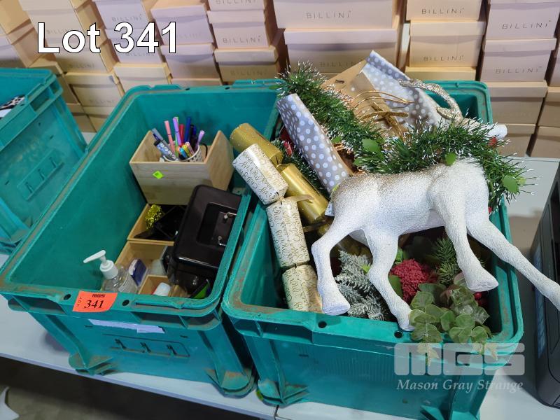 2 X TUBS. SHOP XMAS DECORATIONS & ASSORTED OFFICE SUPPLIES. (TUBS NOT INCLUDED)
