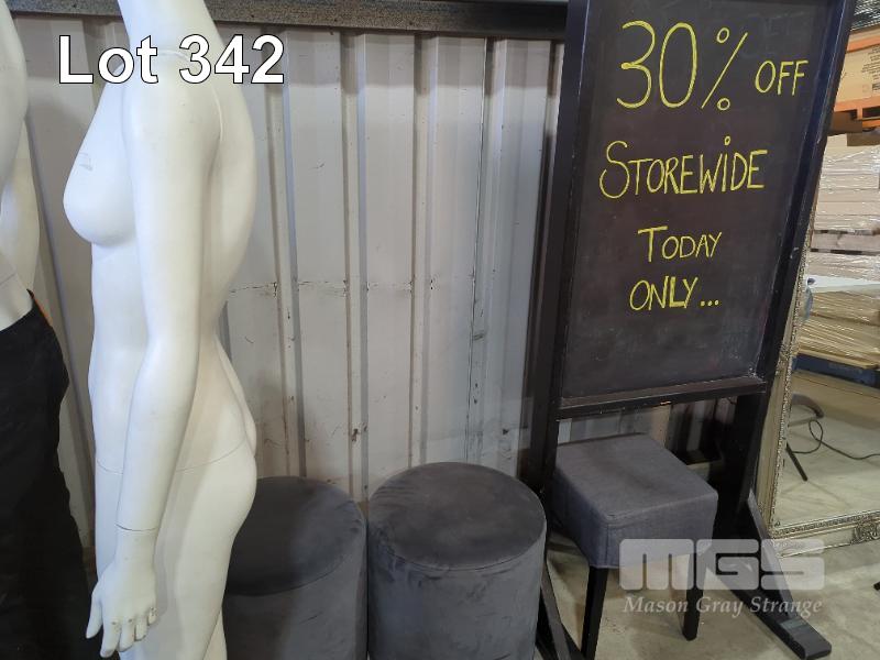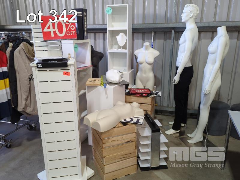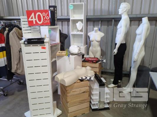 SHOP DISPLAYS, MANNEQUINS, IN-STORE PROMOTIONAL MATERIALS & ASSORTED FURNITURE.