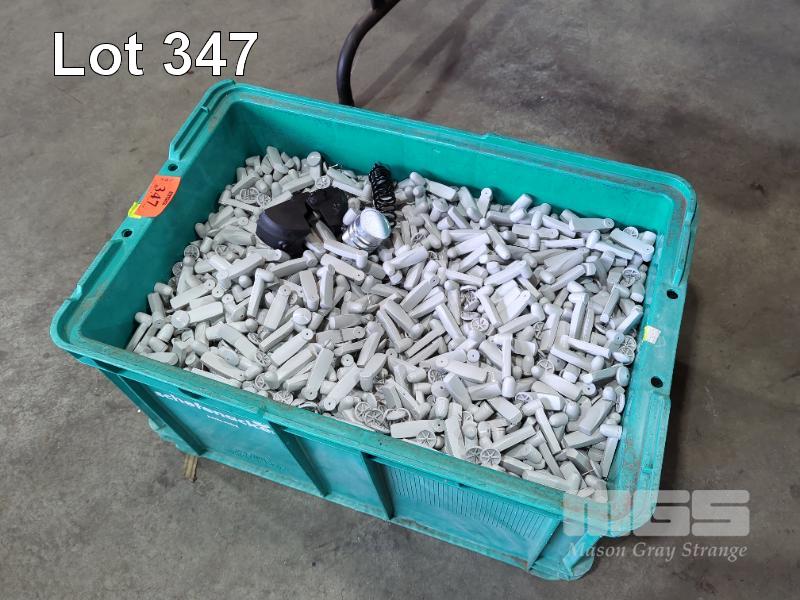1 X TUB. LARGE QUANTITY OF PENCIL CLOTHING SECURITY TAGS AND PINS. 1 X TAG REMOVER. (TUB NOT INCLUDED)
