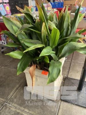3 x SQUARE SANDSTONE POTS WITH ASSORTED PLANTS