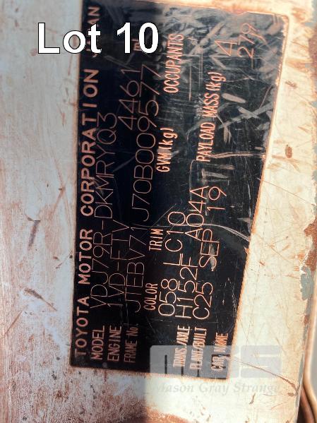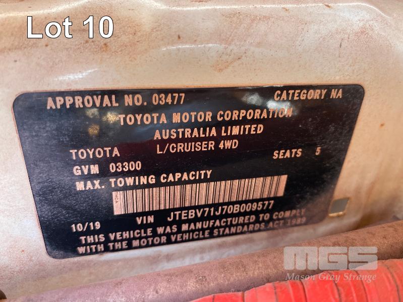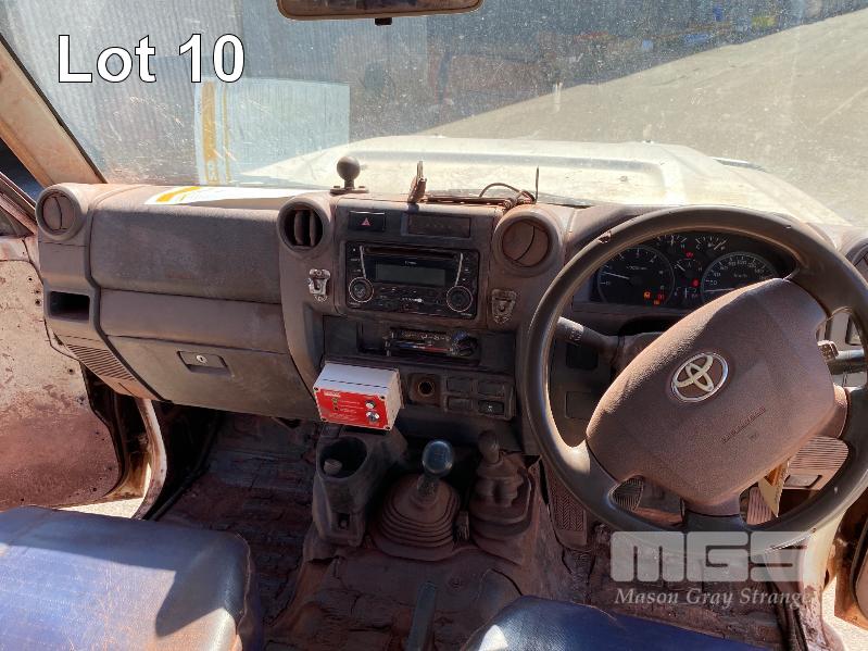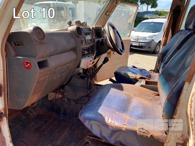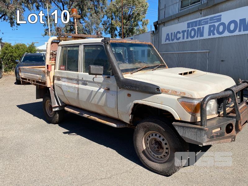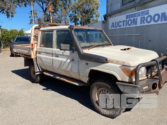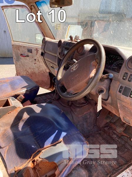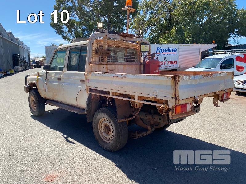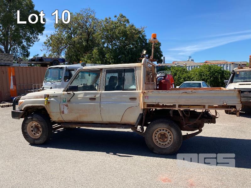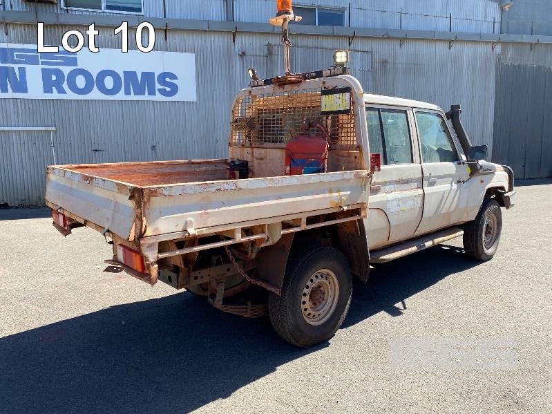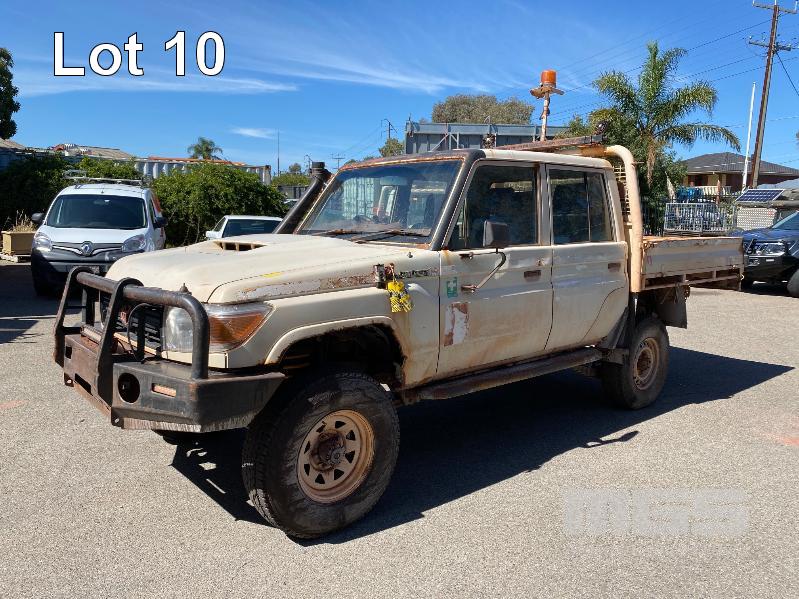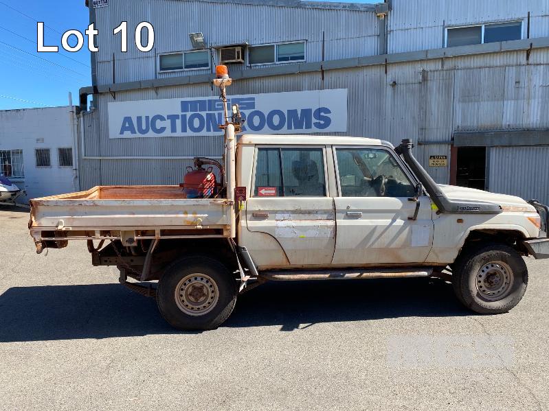 2018 TOYOTA LANDCRUISER VDJ79R DUAL CAB TRAYTOP 4x4 REG: NO PLATES VIN: JTEBV71J70B009577 ODO: 66,744kms SHOWING 4.5 LITRE, V8 TURBO DIESEL, 5 SPEED MANUAL TRANSMISSION, WHITE DUCO, 4 DOORS, 5 SEAT, 4x4 ABS, AIR BAG, AIR CON, BULL BAR, CARGO BARRIER, POWER STEERING, SIDE STEP, SPOT LIGHTS, STEEL TRAY, WARNING LIGHTS, MINE SPEC, FIRE SUPPRESSION SYSTEM BATTERY ISOLATION SWITCHES SNORKEL KEY #27 ASSET #VD516 (WITH 1 KEY/S) CONDITION: BODY & CHASSIC - RUST & CORROSION