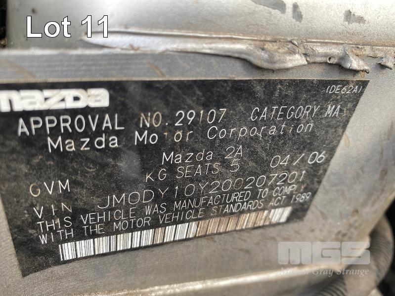 2006 MAZDA 2 HATCH FWD REG: XJR 162 (SA) VIN: JM0DY10Y200207201 ODO: 109,111kms SHOWING 1.5 LITRE, AUTO, PETROL, SILVER DUCO, 4 DOORS, 5 SEAT, FWD ABS, AIR BAG, AIR CON, ALLOY WHEELS, CD PLAYER, CENTRAL LOCKING, FOG LAMPS, POWER STEERING, POWER WINDOWS, SPARE WHEEL, KEY #4 (WITH 1 KEY/S)