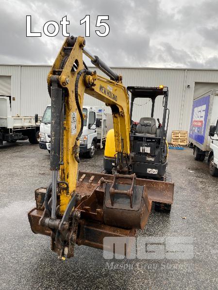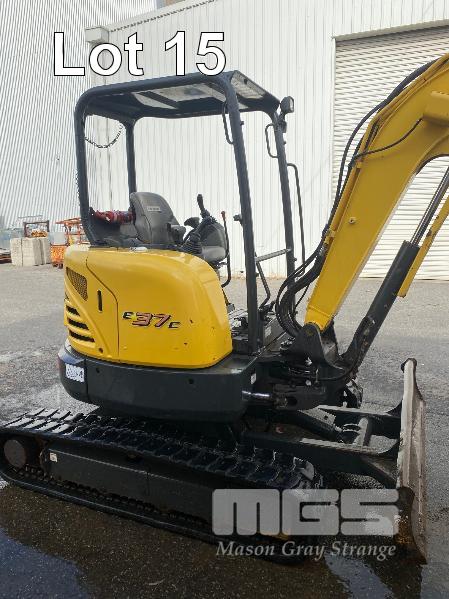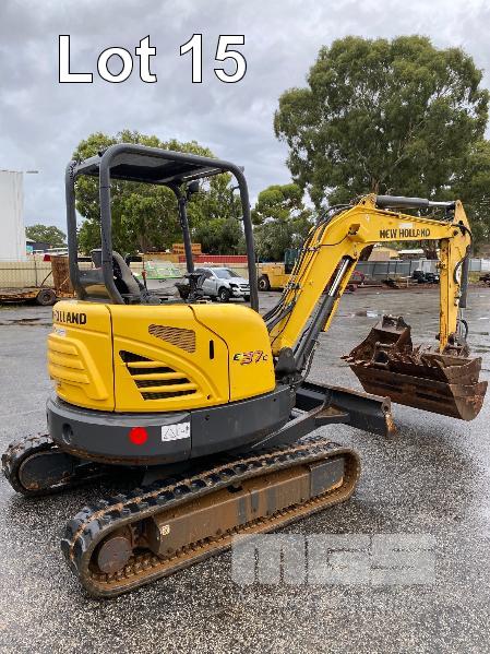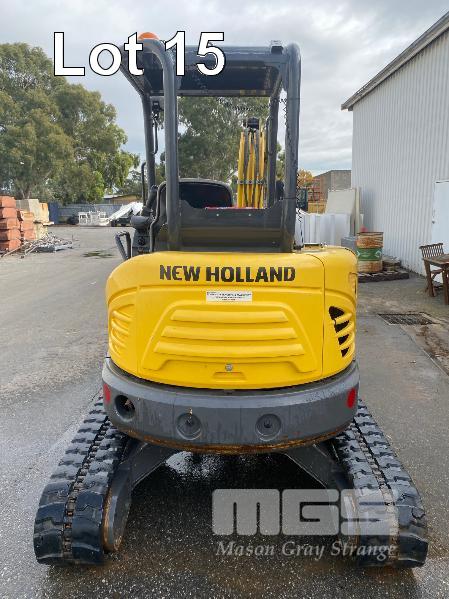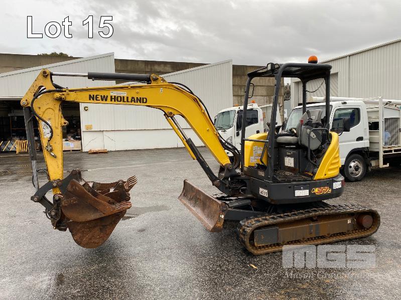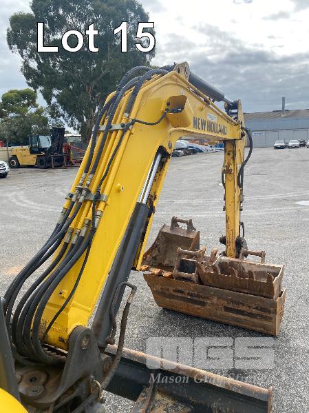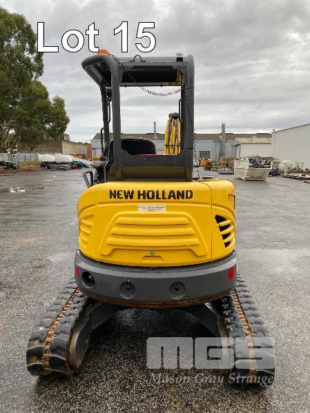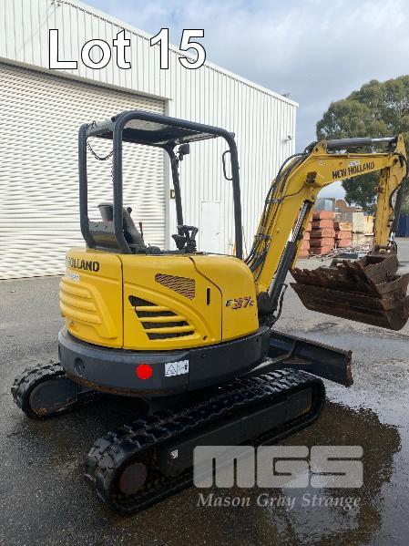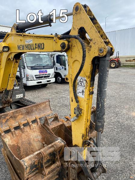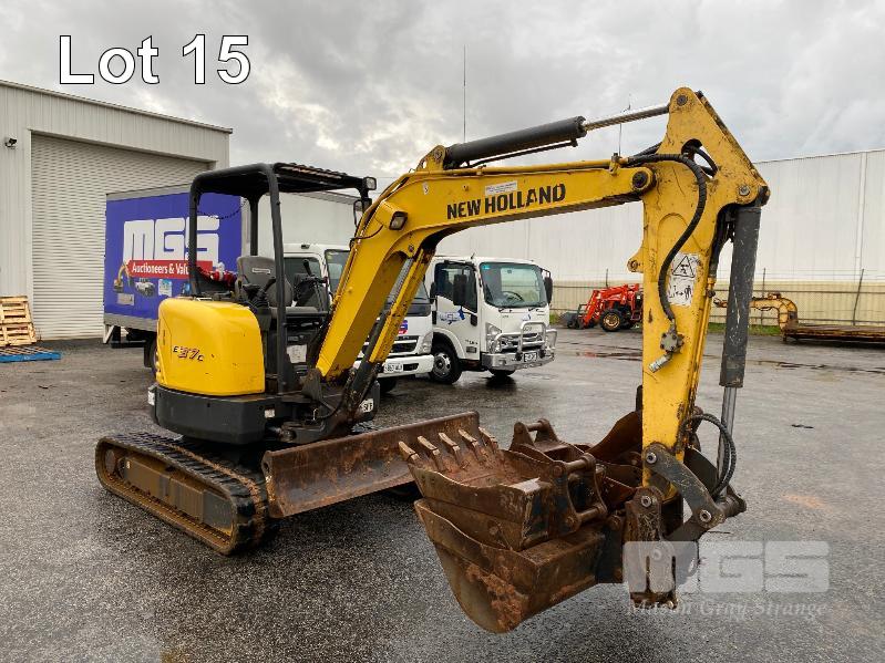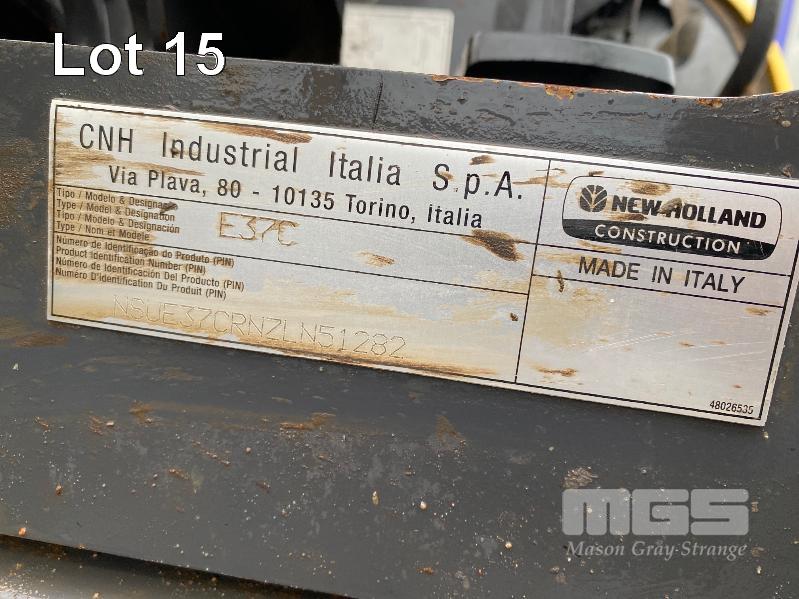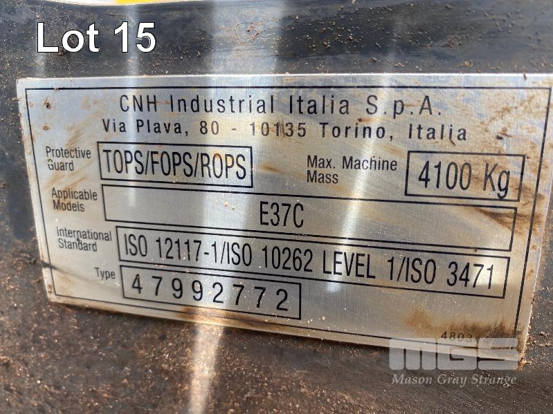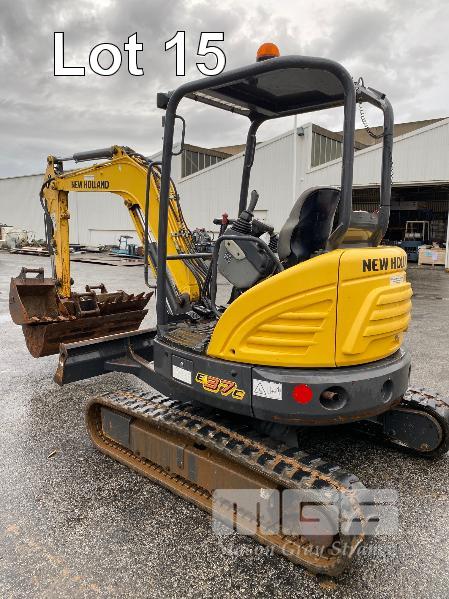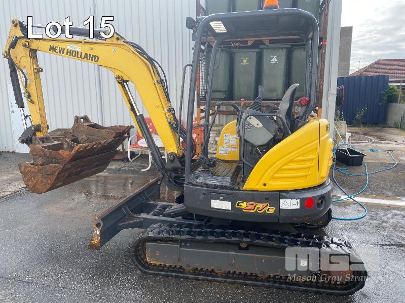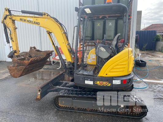 NEW HOLLAND E37C MINI EXCAVATOR REG: S45 SFF (SA) PIN: NSUE37CRNZLN51282 HOURS: 2,420hours SHOWING YANMAR 3 CYLINDER DIESEL, MOD: 4HNSAE RUBBER TRACKER, MACHINE MASS: 4,100kg FITTED WITH BACK FILL BLADE: 1,750mm GP BUCKET, 1,200mm 3 x TRENCHING BUCKETS, 600, 400 & 300mm ROCK BREAKER HYDRULAIC FITTINGS ON BOOM, ROPS/FOPS CANOPY KEY #70 (WITH 1 KEY/S)