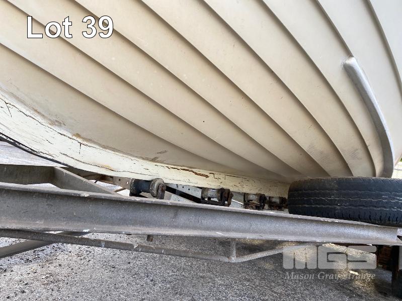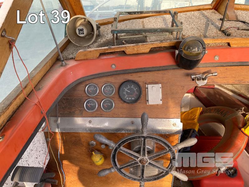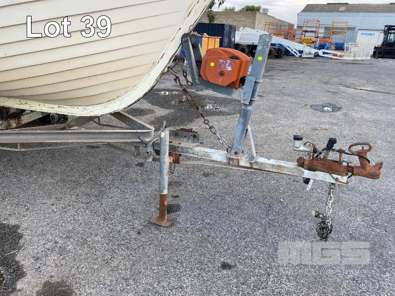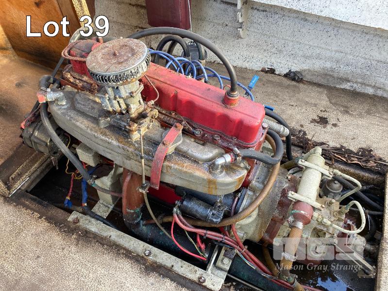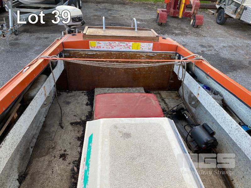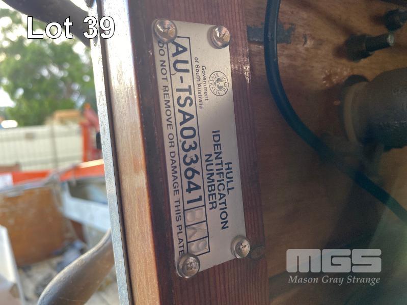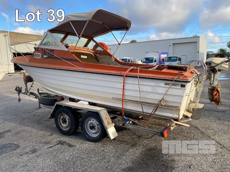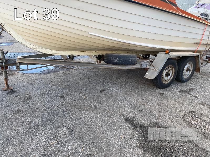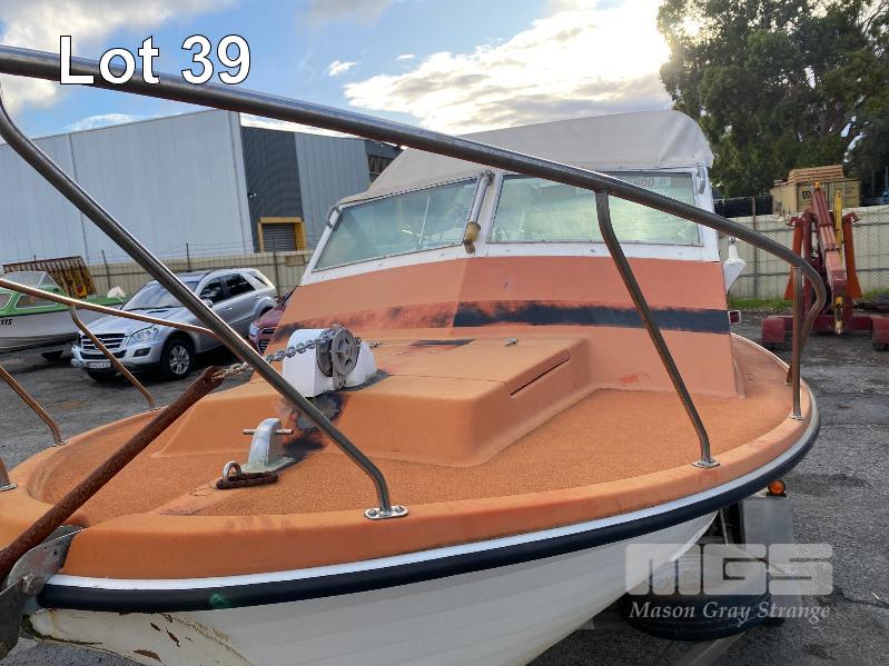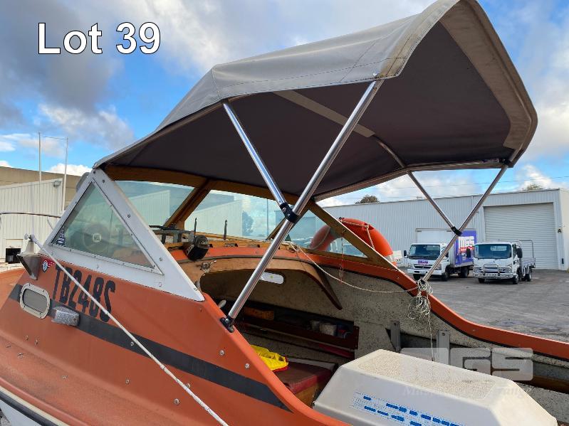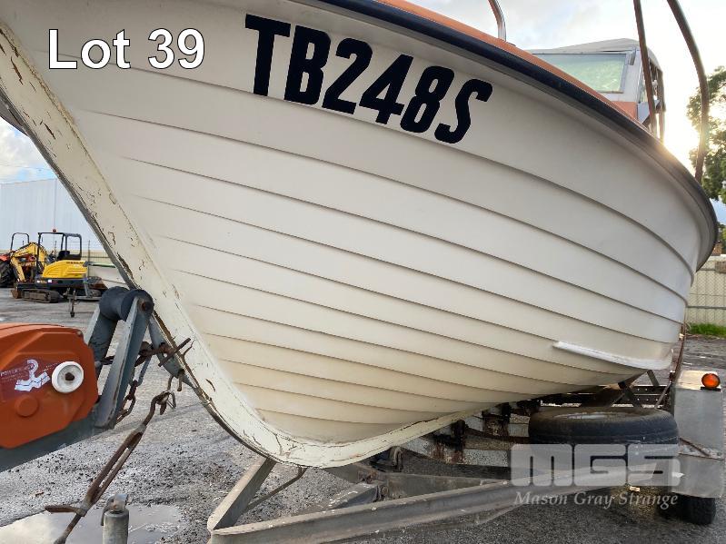 HALF CABIN FIBREGLASS BOAT, GEE CRAFT, 5.9m MARINE REG: TB248S HIN: AUTSA033641BX9 POWERED BY HOLDEN 186 ENGINE, IN BOARD WITH JOHNSON 8 OUTBOARD AUXILIARY WITH MARINE REG PAPER ON TANDEM AXLE TRAILER REG: YAE 828 DOM: 1985 GALV STEEL BALL HITCH, BRAKES' ELECTRIC WINCH WITH PAPERS