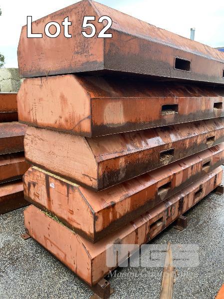 5 x STEEL COUNTERWEIGHTS/RETAINING WALL BLOCKS, CONCRETE FILLED, FORK POCKETS, 3040 x 1100 x 400mm (H)