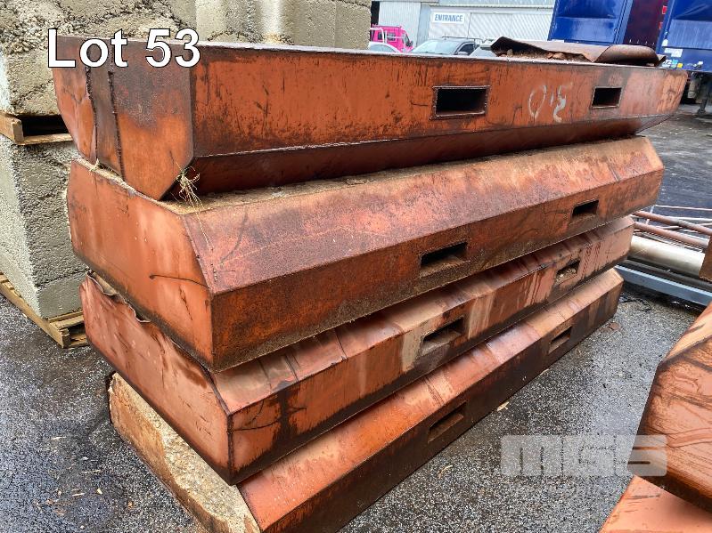4 x STEEL COUNTERWEIGHTS/RETAINING WALL BLOCKS, CONCRETE FILLED, FORK POCKETS, 3040 x 1100 x 400mm (H)