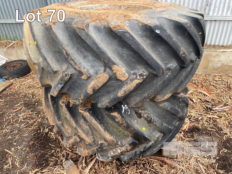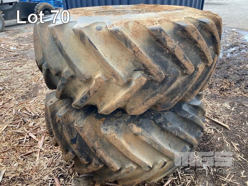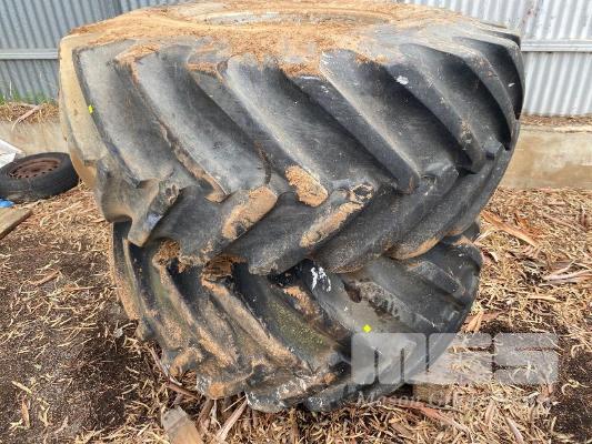2 x EARTHMOVING/AG TYRES & RIMS, GOODYEAR 23.1-26, SURE GRIP & 8 STUD RIM