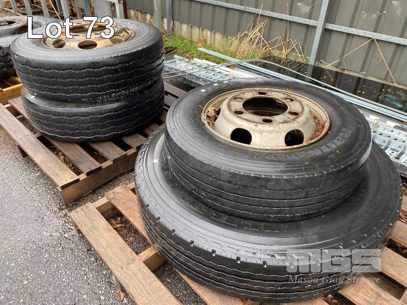 3 x TRUCK TYRES & RIMS, 215/75 & 265/70