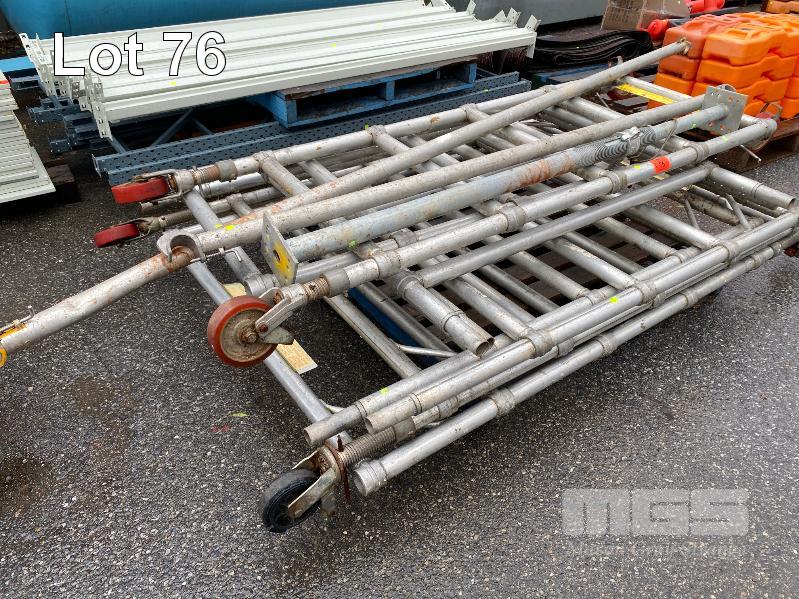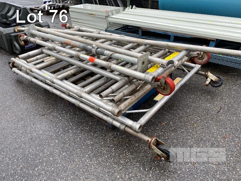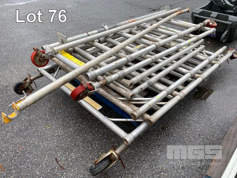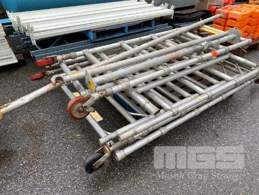 ALULITE SCAFFOLDING, MOBILE, ALLOY COMPRISING, 2 x UPRIGHTS WITH CASTORS, 1350 x 2000mm (H) 2 x UPRIGHTS WITH CASTORS, 750 x 2000mm (H) 2 x UPRIGHTS WITH EXTENSIONS, 1350 x 1750mm (H) 2 x UPRIGHTS WITH EXTENSIONS, 1350 x 1100mm (H), 2 x BRACING BARS & 1 x ACROW PROPS