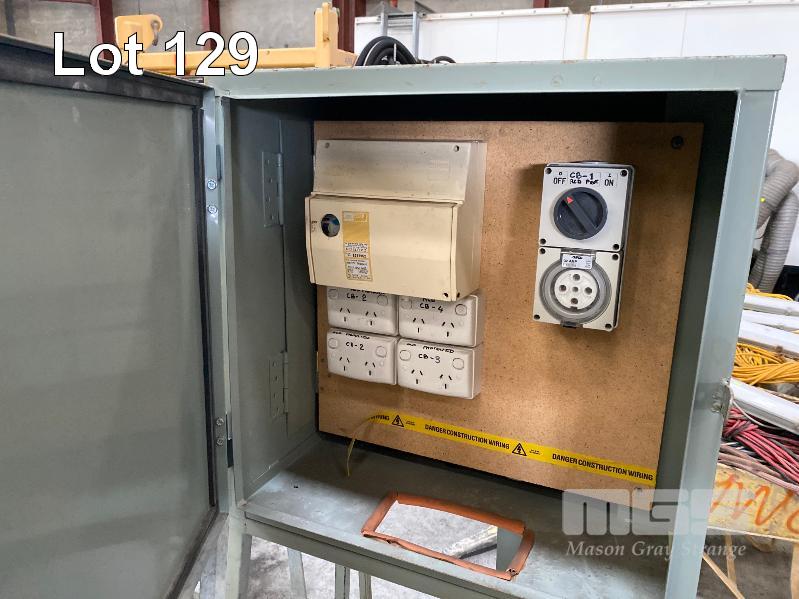 POWER CONTROL SITE BOX ON STAND, INCLUDES 63A, 3PH RCD, 3 x 20A & 1 x 10a CIRCUIT BREAKERS, 1 x 32A 415V GPO & 4 x 10A 240V GPO'S