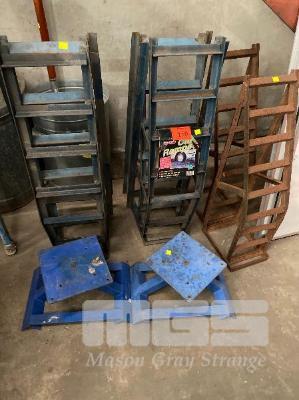 3 x PAIRS STEEL CAR RAMPS, STANFRED & 2 x ROTATING STEEL STANDS