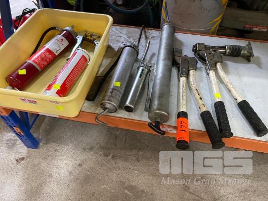 GREASE GUNS, ALEMLUBE, SUCTION GUN, 2 x CRIMPING TOOLS, ETC