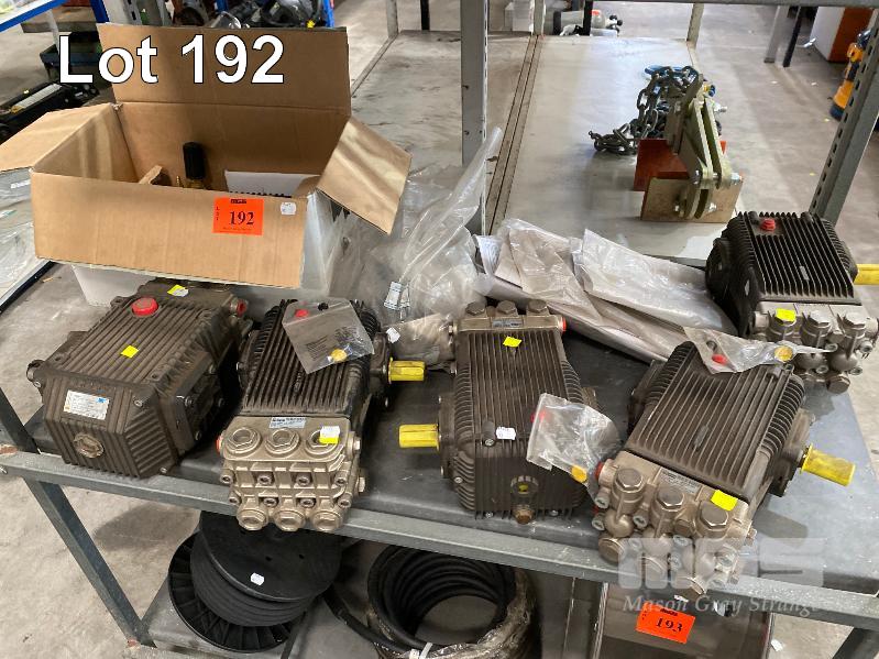 ASSORTED HIGH PRESSURE PUMPS, INCLUDING BERTOLINI KT2721, 275 BAR, 1260L/H, 3 x ANNOVI REVERBERI RW 15.20H, 200BAR, 900L/H, 1 x ANNARI REVERBERI RW 21.20H, BRASS, 3 x ACCESSORY BAGS & OPERATING MANUALS 1 x SHELF