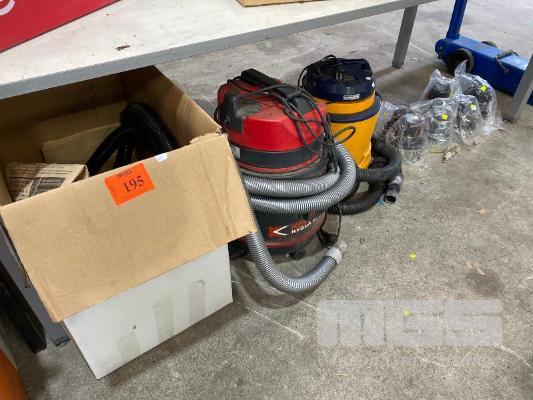 WET/DRY VACUUM CLEANER, HYQUAVAC, 240V, GISOWATT VACUUM CLEANER, PC20, 1000w, 240V, 1 x BOX ACCESSORIES & 6 x NEW VACUUM CLEANER MOTORS