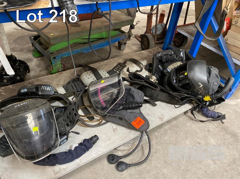 1 x POSITIVE AIR WELDING MASKS, 3M SPEEDGLAS, HOSE, AIRPACK, BATTERY CHARGER, BAG, 1 x SPACE AIRPACK & 2 x POSITIVE AIR GRINDING MASKS, 3M SPEEDGLAS, AIRPACKS, COMPRESSED AIR FEED