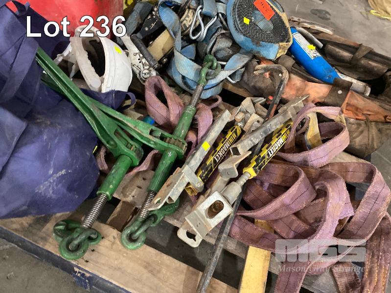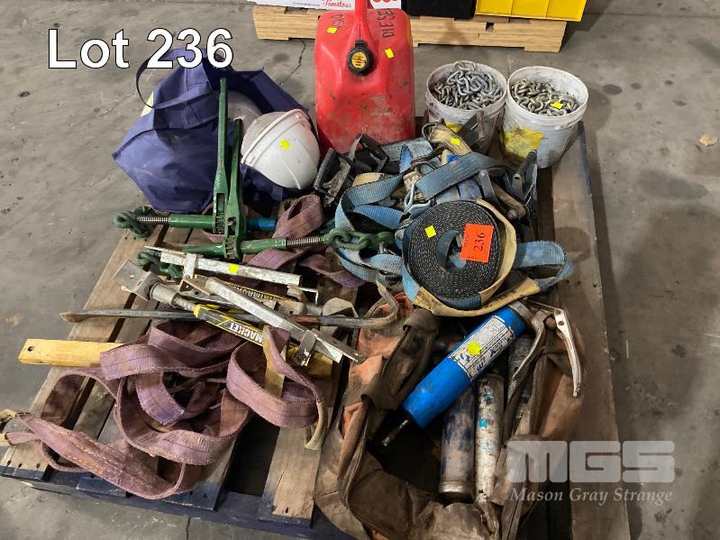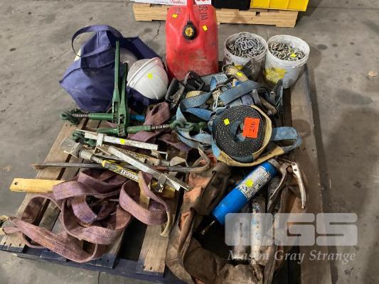 LOAD BINDER/RATCHET STRAPS, CHAINS, MINI MACKETS, GREASE GUNS, SLINGS, ETC
