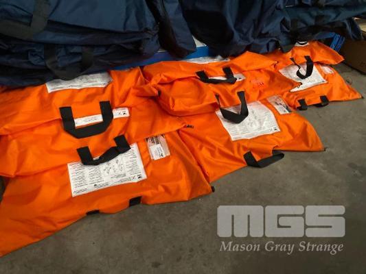 8 x VIKING SOLAS IMMERSION SUITS MOD: PS2004 DOM: 2016 SIZE: UNIVERSAL HEIGHT: 140-200cm WEIGHT: 50-100kg HIGH VISIBILITY YELLOW REFLECTIVE TAPE FOR HIGH VISIBILITY IN THE DARK THERMAL PROTECTION IN COLD WINTER IN CARRY BAG