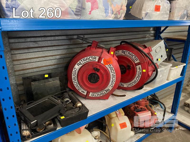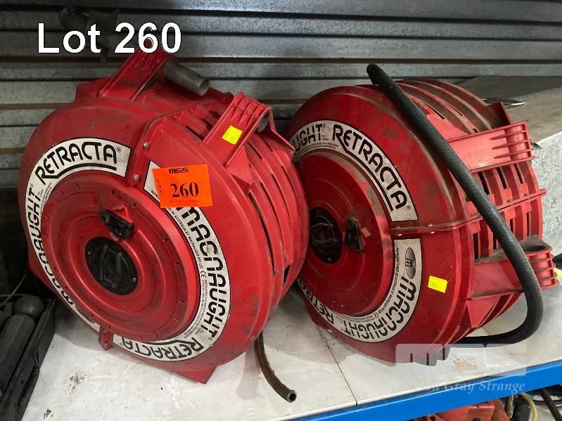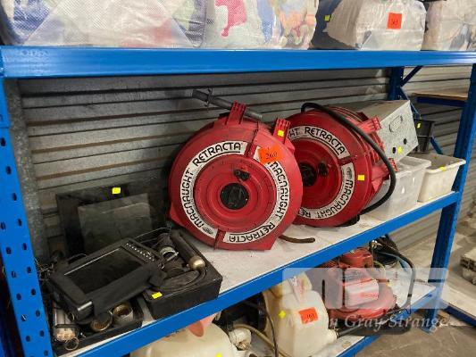 2 x RETRACTA HOSE REELS, MACNAUGHT WITH RADIATOR PRESSURE TEST KIT AIR LINE & ASSORTED HARDWARE