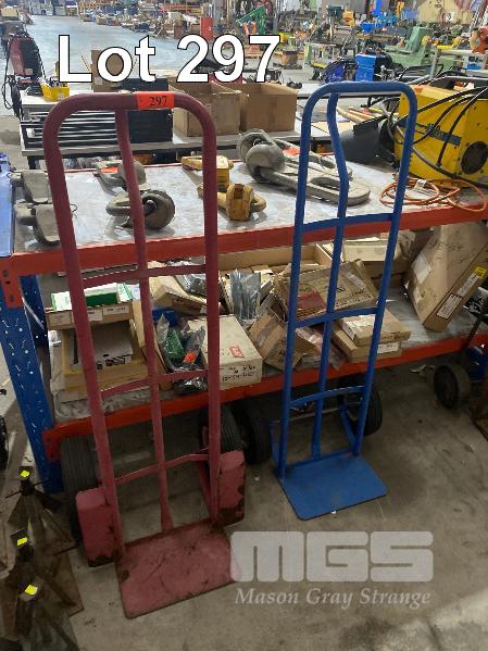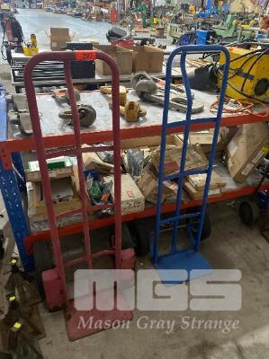 2 x SACK TRUCK TROLLIES, RED & BLUE