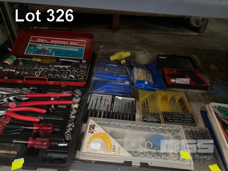 HAND TOOLS INCLUDING SOCKET SETS, PRECISION SCREWDRIVERS, VICE, DRILL BITS, TOOL BOX WITH TORQUE SOCKET DRIVE, SPANNERS, FILES, ETC
