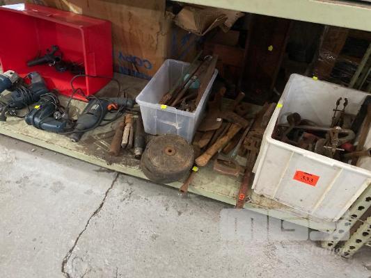 3 x DRILLS, B&D, XUI & 1 x ANGLE GRINDER, 240V WITH ASSORTED HAND TOOLS INCLUDING VICE GRIPS, WRENCHES, FILES, ETC