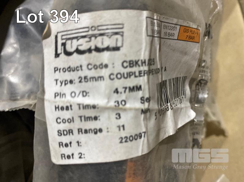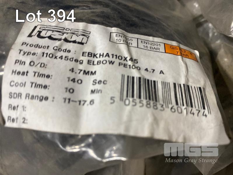 FUSION WELD FITTINGS 60 TO 25mm, ASSORTED FITTING TYPES, INCLUDING REDUCERS, COUPLERS, JOINTS, ELBOWS, ETC