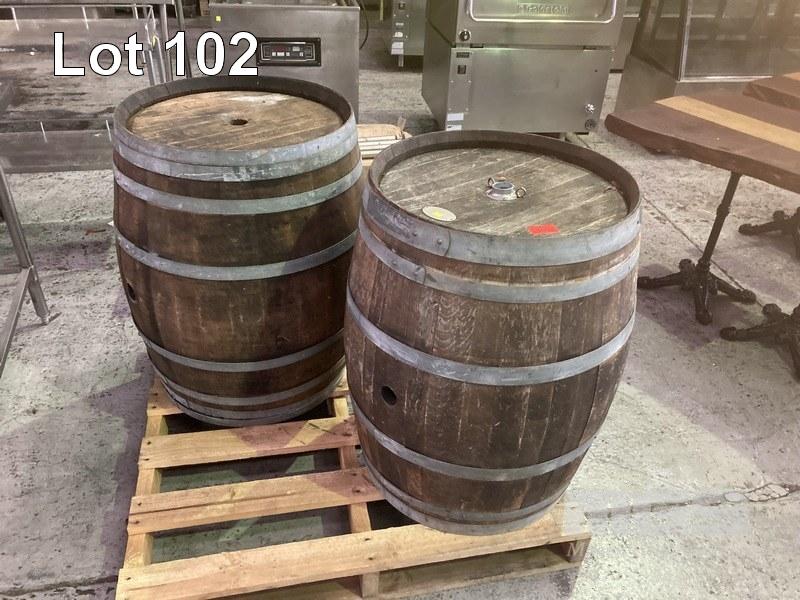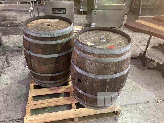 2 x WINE BARRELS WITH UMBRELLA HOLE